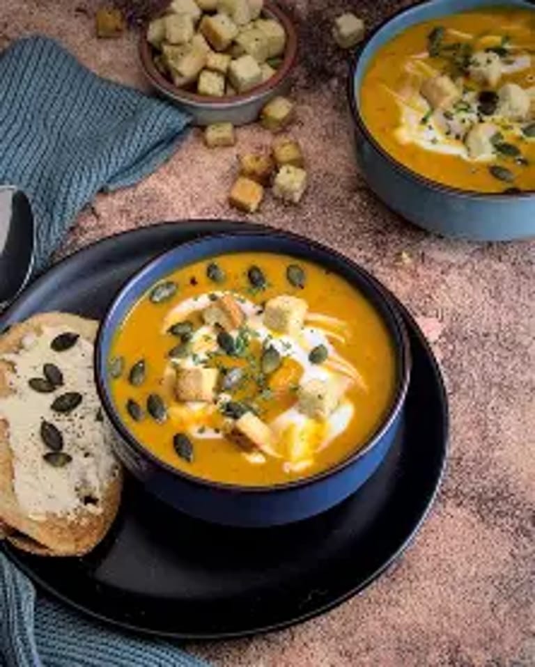 Originalité : le mélange 4 épices donne un velouté réconfortant, légèrement sucré et épicé, parfait en automne ou hiver.