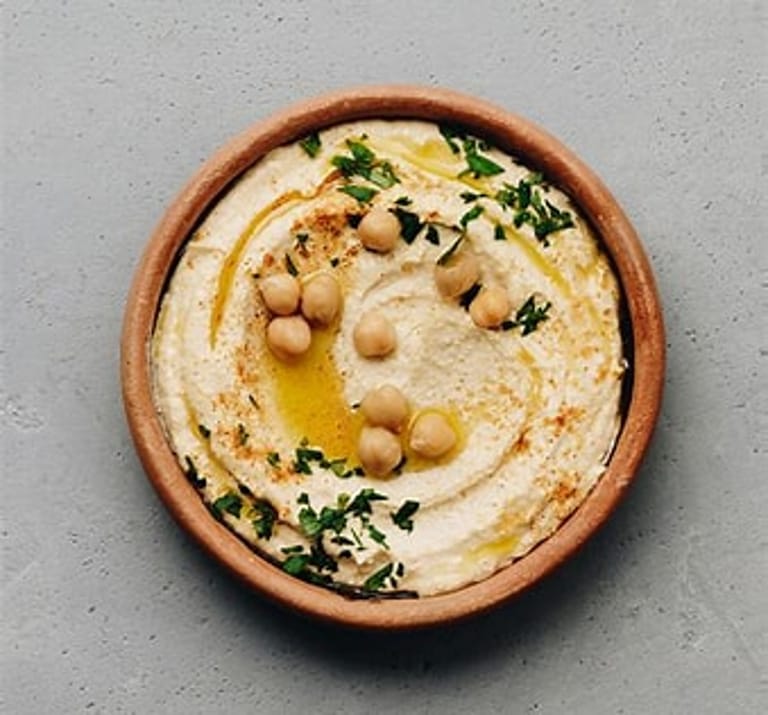 Mixer les pois chiches avec ail, tahini, citron, sel et 2 c. à soupe d’huile.